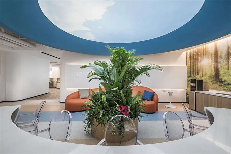 靜謐中疊出粼粼波光,讓本是凝固的空間,因人類與自然、時間與空間有了交疊,過往與未來也有了關(guān)聯(lián);復(fù)行數(shù)十步,豁然開朗…"虛"與"實"相生為境,入:未來之境,獨特的構(gòu)成方式、造型藝術(shù)感為人類電子產(chǎn)品護航;引進公共辦公區(qū),公共辦公區(qū)的空間以原色調(diào)為主,讓整個辦公室設(shè)計看起來更為沉穩(wěn)低調(diào),營造出一種安靜沉淀的氛圍。趣味性的吧臺、參差的綠翼"無盡之柱",藝術(shù)創(chuàng)意品味的貫穿,享受與眾不同的辦公方式。