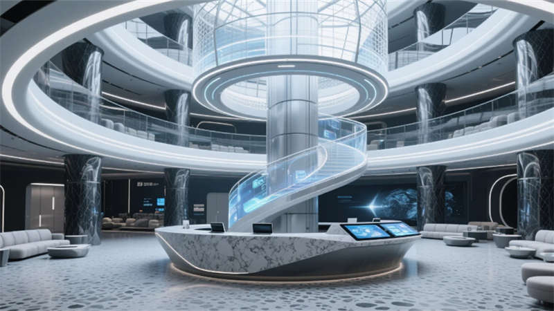厘米級定位系統(tǒng)織就空間的數(shù)字神經(jīng)網(wǎng)絡(luò),實時感知行為軌跡的熱力圖譜。增強(qiáng)現(xiàn)實技術(shù)將虛擬協(xié)作層注入物理環(huán)境,會議紀(jì)要懸浮于白墻上空,項目進(jìn)度可視化流淌在地面光帶中。智能環(huán)境控制系統(tǒng)如同無形的指揮家,根據(jù)溝通場景自動調(diào)節(jié)光域范圍與氣流速度,讓空間氛圍隨對話內(nèi)容自然脈動。當(dāng)數(shù)字邏輯與建筑肌理深度融合,辦公室便升維為承載集體智慧的生命體。