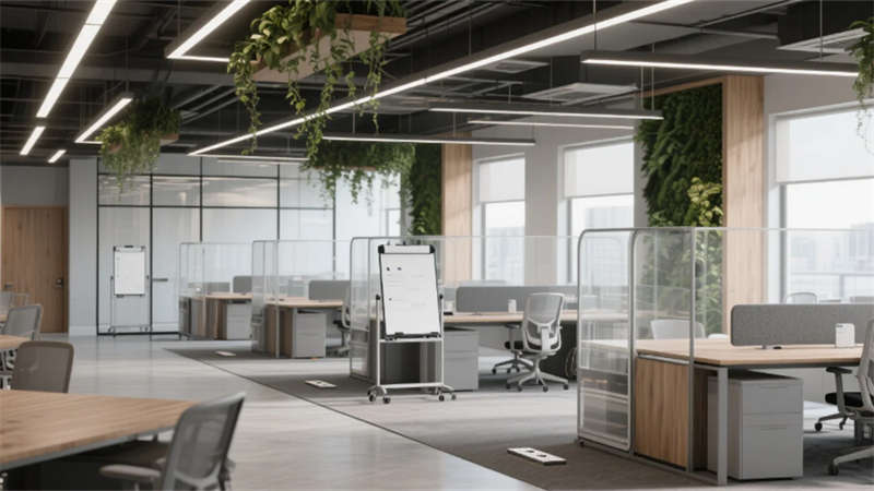 設(shè)計(jì)更以人文觸覺消解科技冰冷感:企業(yè)標(biāo)志性的霧青藍(lán)貫穿于軟裝細(xì)節(jié),4000K色溫照明呵護(hù)視覺舒適度,模塊化綠植系統(tǒng)構(gòu)建立體呼吸網(wǎng)絡(luò)。從智能調(diào)光玻璃到聲學(xué)毛氈墻面,每處創(chuàng)新皆隱于無形,讓科技真正服務(wù)于人的感知體驗(yàn)。這座合肥辦公空間,正以靜默的設(shè)計(jì)語言詮釋著未來工作場(chǎng)域的更多可能——當(dāng)自然、科技與人文在此共振,辦公不再是程式化的容器,而成為激發(fā)創(chuàng)造力的有機(jī)生命體。