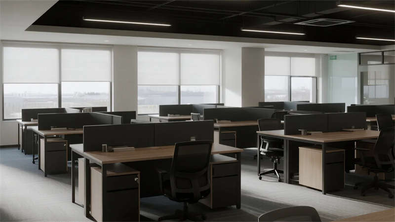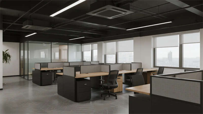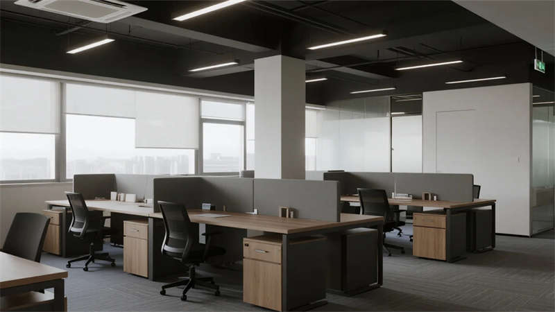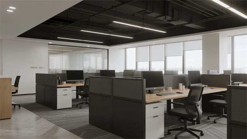 開放辦公區(qū)依托巨幅落地窗引入自然韻律,升降工位與模塊化家具賦予空間彈性;獨立辦公室通過垂直百葉調節(jié)光影私密性,暗藏式書柜燈光烘托沉穩(wěn)氣質。核心協(xié)作區(qū)打破傳統(tǒng)封閉模式,弧形沙發(fā)與可書寫玻璃墻激發(fā)即興創(chuàng)意,而茶水間綠植墻與城市景觀吧臺,則在高效節(jié)奏中注入呼吸感。