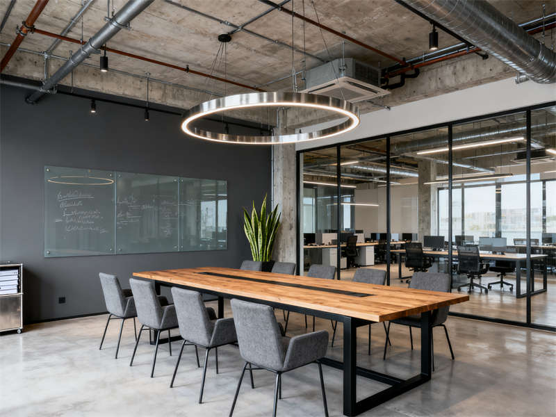 獨(dú)立辦公區(qū)域各有側(cè)重,總經(jīng)理辦公室通過辦公區(qū)與會(huì)客區(qū)的分區(qū)設(shè)計(jì),營(yíng)造層次感與商務(wù)氛圍;會(huì)議室的玻璃書寫墻與環(huán)形吊燈兼顧實(shí)用與設(shè)計(jì)感;財(cái)務(wù)室的檔案柜與地毯細(xì)節(jié),強(qiáng)化收納與靜謐屬性;茶水間以溫馨的操作臺(tái)與休閑區(qū),提供放松空間;技術(shù)研發(fā)辦公室則結(jié)合實(shí)驗(yàn)操作臺(tái)與多接口工位,滿足專業(yè)辦公需求。整體設(shè)計(jì)在統(tǒng)一風(fēng)格下,針對(duì)不同功能區(qū)域精準(zhǔn)規(guī)劃,適配工廠辦公室的多元辦公場(chǎng)景。