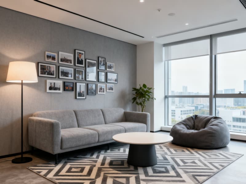細(xì)節(jié)設(shè)計中,注重人性化與實用性,選用環(huán)保耐用的裝修材料,搭配無主燈設(shè)計與充足綠植,改善辦公環(huán)境;融入智能設(shè)備(無線充電、智能感應(yīng)燈等)提升便捷度;地域元素通過裝飾畫、浮雕等形式巧妙呈現(xiàn),增強(qiáng)空間歸屬感。整體設(shè)計既符合現(xiàn)代商務(wù)辦公的專業(yè)調(diào)性,又通過自然質(zhì)感與人文細(xì)節(jié),為企業(yè)打造兼具效率與溫度的優(yōu)質(zhì)辦公載體。