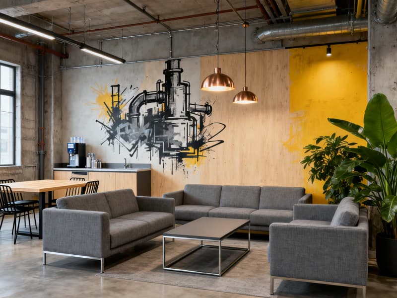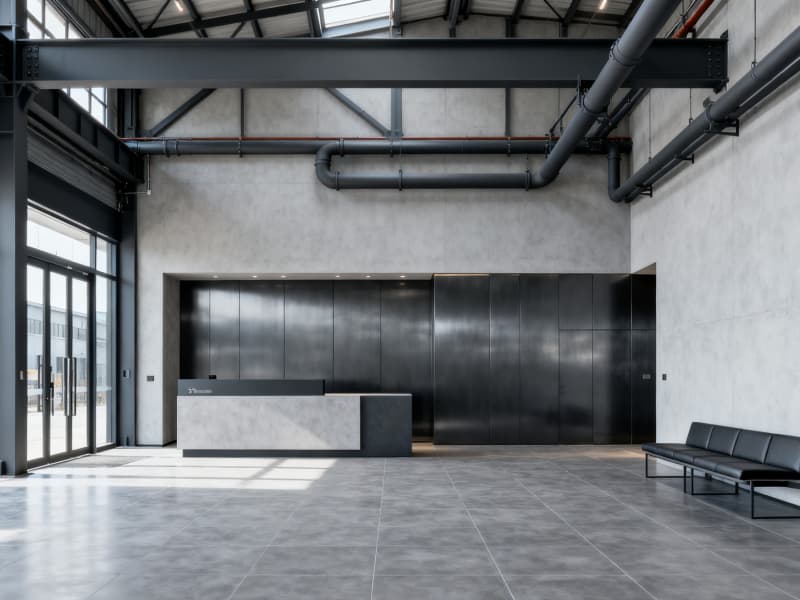 本設(shè)計(jì)聚焦6000平廠房的工業(yè)屬性與實(shí)用需求,以現(xiàn)代工業(yè)風(fēng)為核心,打造高效、規(guī)范且兼具人文關(guān)懷的生產(chǎn)辦公空間。整體色調(diào)以深灰、淺灰、黑色為主,搭配局部橙色警示色與淺木色暖調(diào),既契合工業(yè)空間的專業(yè)質(zhì)感,又避免環(huán)境的冰冷與壓抑。