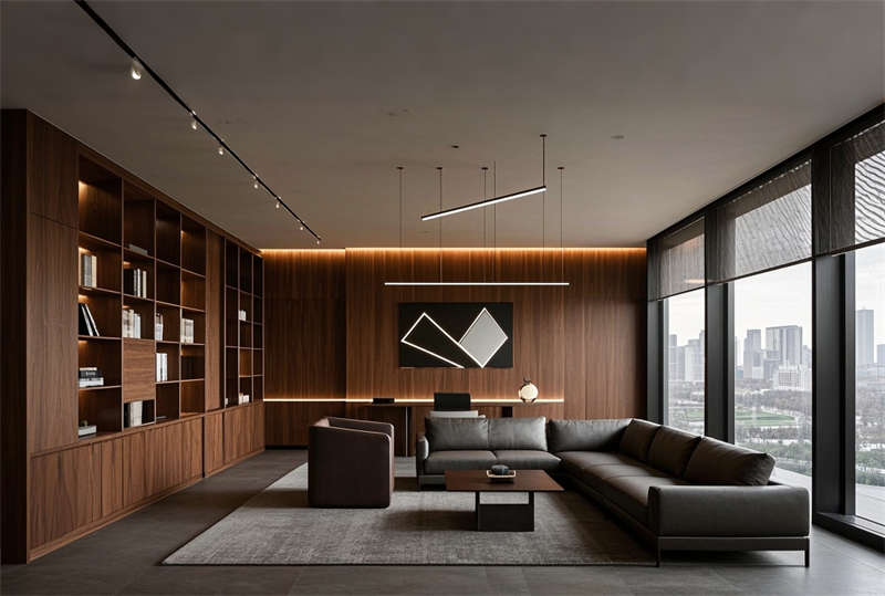 本項(xiàng)目為 3000㎡現(xiàn)代簡(jiǎn)約風(fēng)格辦公室整體設(shè)計(jì),以前沿的智能辦公理念為核心,采用淺灰、原木、金屬三色基調(diào)。空間規(guī)劃注重功能分區(qū)與動(dòng)線優(yōu)化,包含開放辦公區(qū)、獨(dú)立辦公室、智能會(huì)議室等 10 大功能模塊。設(shè)計(jì)運(yùn)用穿孔鋁板、GRG 造型吊頂?shù)刃滦筒牧?,結(jié)合聲學(xué)處理和智能控制系統(tǒng),打造高效舒適的辦公環(huán)境。照明系統(tǒng)采用 4000K 暖白光搭配線性燈帶,確保工作照度同時(shí)營(yíng)造現(xiàn)代感。環(huán)保方面選用 E0 級(jí)板材和凈味涂料,配備新風(fēng)凈化系統(tǒng)。特色設(shè)計(jì)包括可升降圓桌休息區(qū)、電動(dòng)霧化玻璃會(huì)議室及太空艙電話亭,充分滿足多元化辦公需求。空間內(nèi)設(shè)置 20% 靈活可變區(qū)域,支持未來(lái)團(tuán)隊(duì)擴(kuò)展。所有家具均符合人體工學(xué)標(biāo)準(zhǔn),墻面裝飾融入企業(yè) VI 元素,塑造專業(yè)品牌形象。