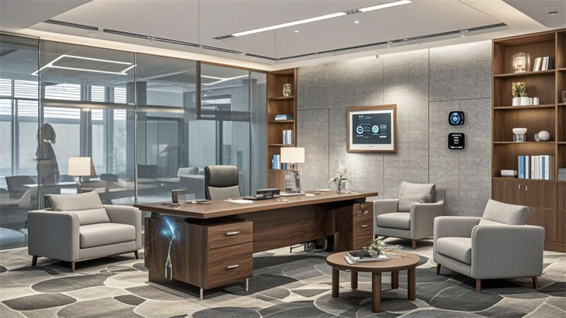 ④聲學吊頂確保35分貝以下靜音環(huán)境。色彩搭配采用70%淺灰奠定基調,20%原木色增添溫暖,10%企業(yè)藍作為點睛色。環(huán)保方面選用LEED認證材料,集成光伏玻璃幕墻年發(fā)電量達8萬度。