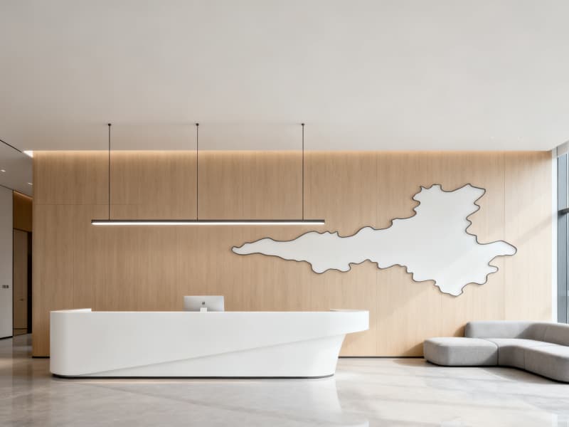 在功能分區(qū)上,合理劃分開(kāi)放辦公區(qū)、獨(dú)立辦公室、會(huì)議室、休閑茶水間等區(qū)域,既保證員工高效辦公,又滿(mǎn)足交流協(xié)作與休閑放松的需求。細(xì)節(jié)設(shè)計(jì)上,融入蚌埠淮河、龍子湖等地域元素,通過(guò)裝飾畫(huà)、背景墻圖案等形式呈現(xiàn),增強(qiáng)空間的地域認(rèn)同感與文化氛圍。?