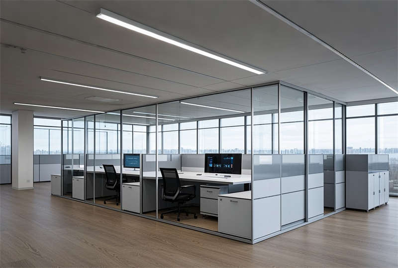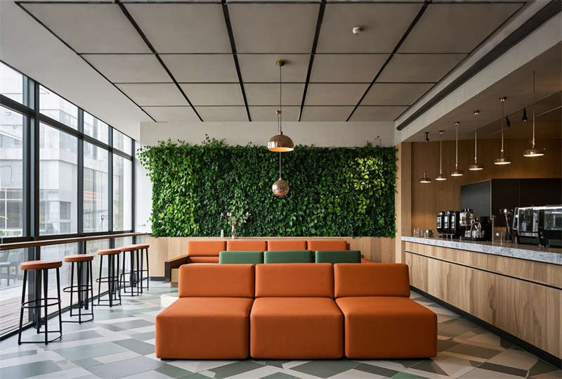 本案為 6000 平方米現(xiàn)代化科技辦公樓裝修項目,設計采用 ' 未來辦公生態(tài) ' 理念,以藍灰主色調構建專業(yè)商務氛圍。空間規(guī)劃突破傳統(tǒng)格局,大堂設置 10 米挑空 LED 藝術裝置墻,智能光控系統(tǒng)實現(xiàn)晝夜模式切換。開放式辦公區(qū)采用模塊化組合家具,集成無線充電、智能升降等人性化功能。會議室配置可觸控霧化玻璃隔斷系統(tǒng),實現(xiàn)空間靈活轉換。特別設計的階梯會議中心配備全景聲控系統(tǒng),墻面采用吸音穿孔鋁板確保會議私密性。環(huán)保理念貫穿始終,選用零甲醛板材和可回收地毯,屋頂花園配置雨水收集系統(tǒng)。燈光設計采用色溫可調 LED 光源,通過智能中控系統(tǒng)實現(xiàn)場景模式一鍵切換,打造高效、舒適、可持續(xù)發(fā)展的新型辦公生態(tài)圈。