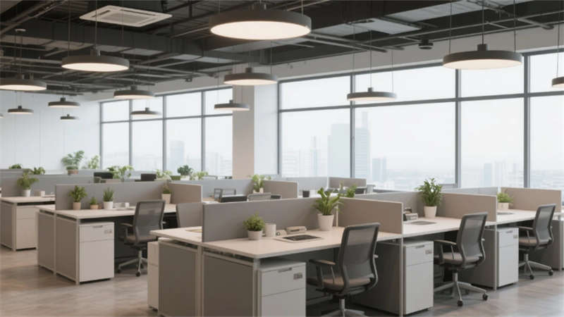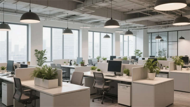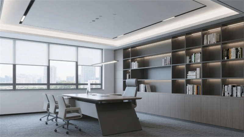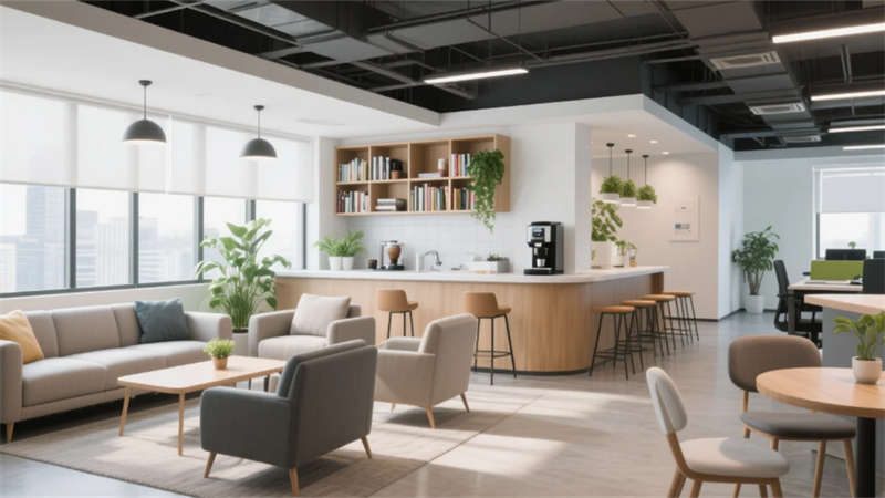 本辦公樓設(shè)計(jì)以簡(jiǎn)約現(xiàn)代風(fēng)格為核心,打造一個(gè)統(tǒng)一而流暢的空間體驗(yàn)。整體強(qiáng)調(diào)功能性、舒適性和美學(xué)平衡,每個(gè)功能區(qū)均采用中性色調(diào)、干凈線條和自然元素,營(yíng)造出寧?kù)o和諧的環(huán)境。大堂入口以開(kāi)放通透的布局迎接用戶(hù),結(jié)合玻璃幕墻和木質(zhì)細(xì)節(jié),傳遞專(zhuān)業(yè)而溫馨的第一印象。開(kāi)放式辦公區(qū)通過(guò)模塊化家具和充足采光,促進(jìn)團(tuán)隊(duì)協(xié)作與效率。會(huì)議室設(shè)計(jì)注重靈活性,透明隔斷和集成設(shè)備支持高效交流。員工休息區(qū)和餐廳咖啡吧作為社交中心,提供舒適休閑空間,增強(qiáng)員工福祉。經(jīng)理辦公室平衡隱私與開(kāi)放性,簡(jiǎn)約家具營(yíng)造專(zhuān)注氛圍。走廊和衛(wèi)生間延續(xù)統(tǒng)一美學(xué),注重清潔與引導(dǎo)性,確??臻g銜接自然。