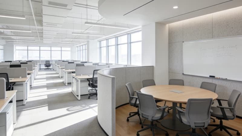合肥6000㎡辦公樓設(shè)計(jì),以“高效、健康、智能”為核心,打造適配企業(yè)全發(fā)展階段的辦公空間。采用“40%獨(dú)立辦公+30%開放工位+30%協(xié)作休閑”科學(xué)布局,最大化利用每一寸空間。