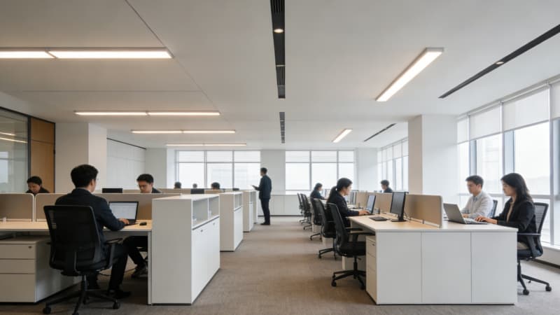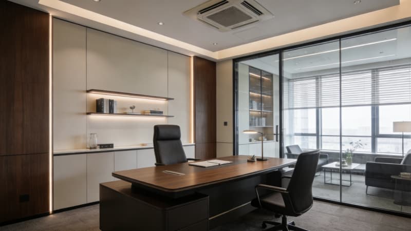 融入智能環(huán)境控制系統(tǒng),自動調(diào)節(jié)溫濕度與燈光;搭配人體工學(xué)家具、中央新風(fēng)系統(tǒng),為員工筑牢健康屏障。整體采用現(xiàn)代簡約風(fēng)格,摒棄冗余裝飾,通過色彩與材質(zhì)碰撞凸顯企業(yè)質(zhì)感,同時預(yù)留品牌文化植入空間。