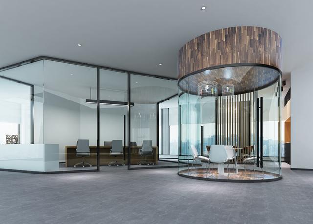 像“巢”一樣的圓柱形洽談區(qū)別有寓意,玻璃材質(zhì)既保證了客戶在洽談時(shí)視覺上的通透,也照顧了客戶心理上對私密性的需求。