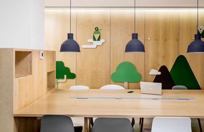 卡通樣式的裝修格調,根據(jù)所在區(qū)域的不同功能而被設計的風格各異,但卻具有同樣的目的,那就是營造出一種通透的感覺,這種在各個區(qū)域之間自由流動的感覺,肯定會給那些稚嫩的小臉龐帶來一些快樂。
