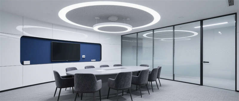 高管辦公室通過(guò)灰玻霧化膜實(shí)現(xiàn)私密與通透的辯證,胡桃木辦公桌與深灰沙發(fā)組演繹商務(wù)美學(xué),隱藏式智能控制系統(tǒng)將科技感融于無(wú)形??萍紩?huì)議室創(chuàng)新采用環(huán)形桌體與360°攝像系統(tǒng),陣列麥克風(fēng)與補(bǔ)光燈帶打造沉浸式遠(yuǎn)程協(xié)作場(chǎng)景。從光伏玻璃幕墻到模塊化綠植系統(tǒng),從智能升降辦公桌到節(jié)能設(shè)備集群,每個(gè)細(xì)節(jié)都銘刻著可持續(xù)發(fā)展的空間基因。