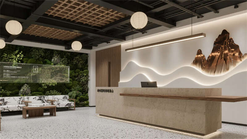 空間脈絡(luò)延續(xù)山水哲學——開放式辦公區(qū)的水墨玻璃隔斷營造朦朧畫境,創(chuàng)想實驗室可書寫墻面激發(fā)思維奔流。協(xié)作沙龍區(qū)的階梯布局與動態(tài)山水投影,催化靈感迸發(fā)的化學反應。靜思艙藏身綠植墻中,為深度思考保留秘境。
