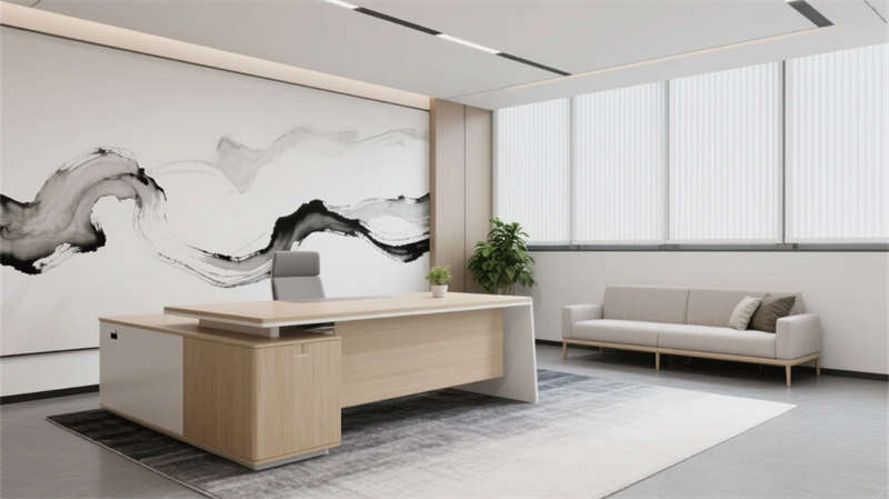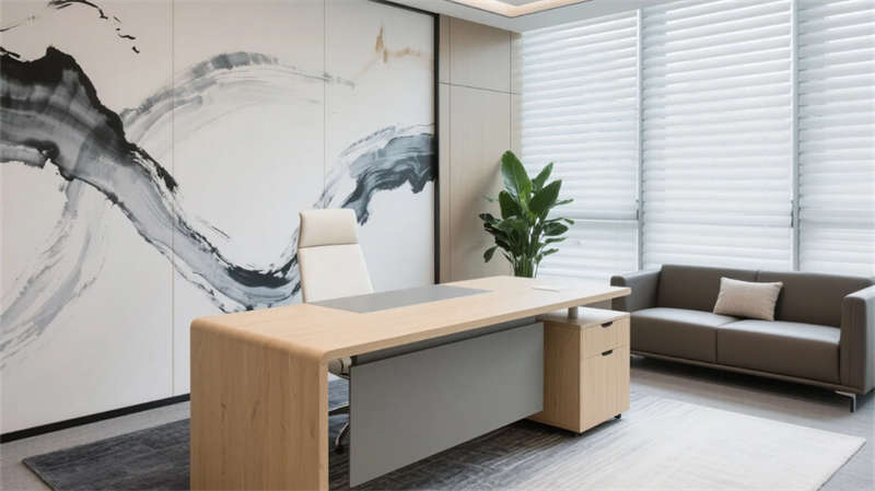 該設(shè)計(jì)以現(xiàn)代簡約語言重構(gòu)辦公空間秩序,通過光影與材質(zhì)的精妙平衡,營造滁州商務(wù)美學(xué)的當(dāng)代樣本??臻g以淺木、暖灰與啞光白為主調(diào),線性光帶貫穿各區(qū)域,形成視覺連續(xù)性。開放辦公區(qū)借落地窗引入瑯琊山景光影,百葉簾調(diào)節(jié)自然與人工光的韻律;協(xié)作區(qū)弧形沙發(fā)與綠植墻柔化幾何理性,激發(fā)團(tuán)隊(duì)創(chuàng)造力。