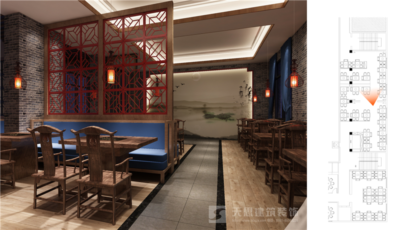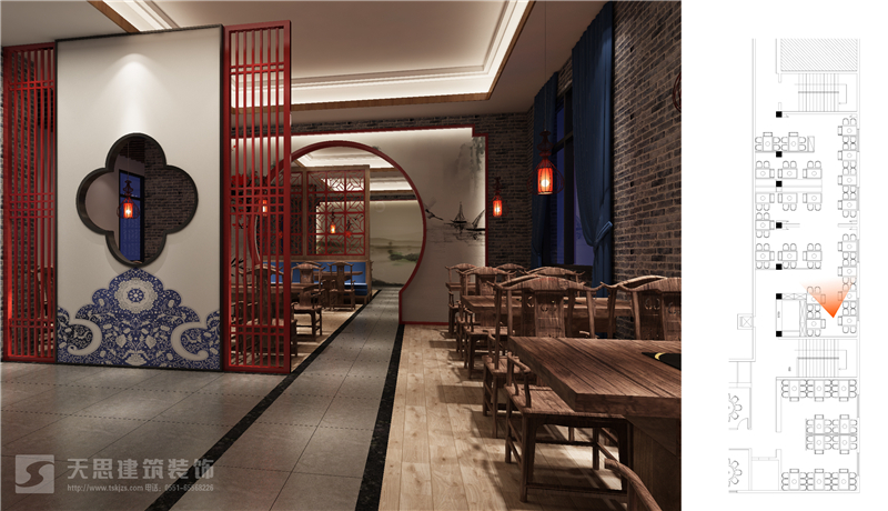 夢徽州酒店四樓火鍋店設(shè)計(jì)效果