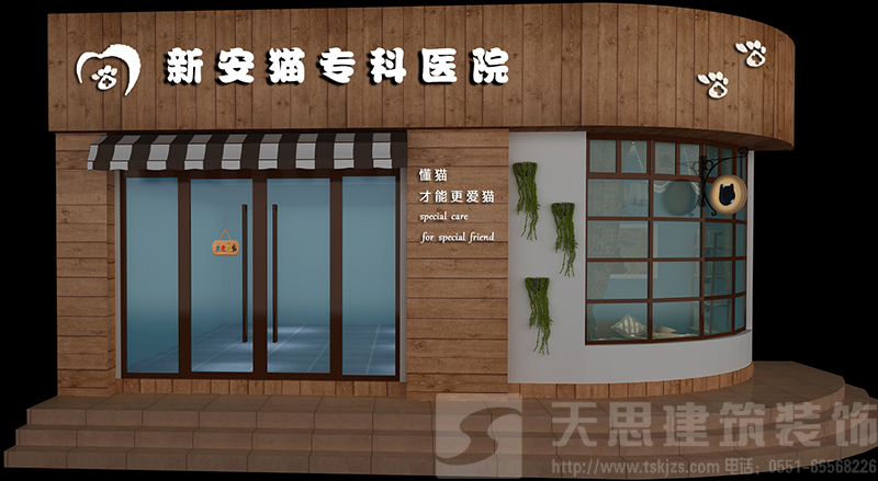 工程名稱:貓科醫(yī)院 設(shè)計(jì)師:葉曉麗 面積:150平米 項(xiàng)目地址:廬陽區(qū)北一環(huán)沿河路 設(shè)計(jì)簡介:新安貓科醫(yī)院是一家專業(yè)為寵物貓?zhí)峁┽t(yī)療、護(hù)理以及美容的醫(yī)院。門頭設(shè)計(jì)