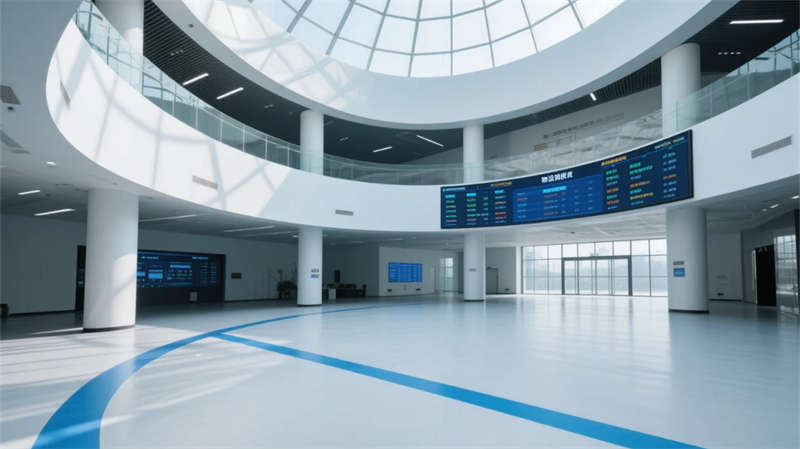 物流中庭的挑空設(shè)計打破廠房尺度壓迫感,懸掛式數(shù)據(jù)看板如抽象藝術(shù)品,與玻璃穹頂投下的天光共構(gòu)科技禪意。研發(fā)區(qū)可移動實驗裝置墻體現(xiàn)柔性生產(chǎn)理念,分子結(jié)構(gòu)藝術(shù)墻繪暗喻制造背后的科學探索。