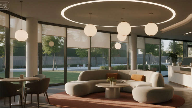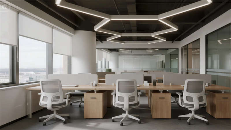 生產(chǎn)空間聚焦高效與潔凈,智能機(jī)械臂單元與模塊化管線系統(tǒng)滿足精密材料制造需求,冷色調(diào)照明強(qiáng)化科技嚴(yán)謹(jǐn)感。研發(fā)區(qū)域突破傳統(tǒng)廠房格局,落地窗引入自然光與園區(qū)景觀,垂直綠墻凈化空氣的同時激發(fā)創(chuàng)造力。