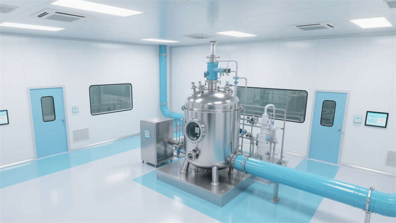 本設(shè)計以現(xiàn)代極簡工業(yè)風融合醫(yī)藥合規(guī)美學(xué),打造出契合醫(yī)藥生產(chǎn)需求的專業(yè)空間。整體以潔凈白為基底,搭配醫(yī)療藍進行功能分區(qū)點綴,淺灰自然過渡,材質(zhì)上選用不銹鋼潔凈面板、防菌環(huán)氧樹脂地面與高透防爆玻璃,營造出潔凈且專業(yè)的視覺氛圍。?