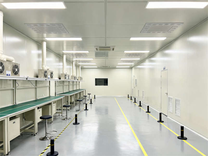 室內(nèi)裝修延續(xù)了外觀的設(shè)計(jì)語言,以淺灰、米白為基礎(chǔ)色調(diào),搭配深灰金屬線條點(diǎn)綴,各區(qū)域材質(zhì)統(tǒng)一,地面均采用耐磨易清潔的環(huán)氧地坪,墻面根據(jù)不同功能需求選用潔凈板或工業(yè)風(fēng)涂料,確保整體視覺協(xié)調(diào)。無塵車間注重潔凈與開闊,通過合理布局設(shè)備與通風(fēng)系統(tǒng),營(yíng)造出無粉塵、秩序井然的生產(chǎn)環(huán)境;實(shí)驗(yàn)室則突出精準(zhǔn)專業(yè),實(shí)驗(yàn)臺(tái)、通風(fēng)櫥等設(shè)施規(guī)劃合理,滿足各類實(shí)驗(yàn)操作需求。?