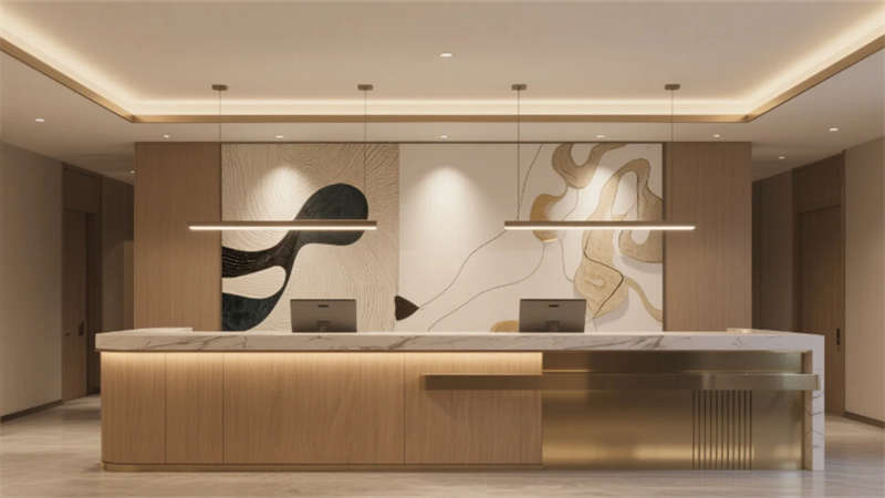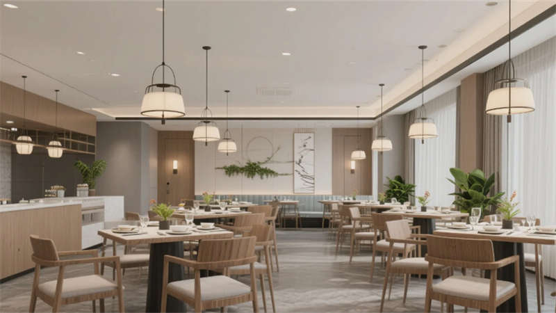 這個酒店設計以現(xiàn)代簡約風格為核心,通過統(tǒng)一的色調(diào)和元素,創(chuàng)造出和諧而優(yōu)雅的空間體驗。大堂作為入口,以淺木色和白色為主調(diào),配以舒適的沙發(fā)和綠植,營造出welcoming的氛圍。前臺延續(xù)簡約理念,木質(zhì)柜臺和藝術(shù)細節(jié)彰顯精致感。餐廳采用開放式布局,木質(zhì)桌椅和吊燈的點綴,讓用餐時刻充滿輕松與自然氣息。酒吧區(qū)則以深色吧臺和暖光照明,提供私密而時尚的社交空間??头吭O計注重舒適與隱私,大窗戶引入城市景觀,簡約家具確保寧靜的休憩環(huán)境。會議室專業(yè)而高效,中性色調(diào)和隱藏照明支持專注的商務活動。健身房融入鏡面和綠植,活力十足又不失簡約美感。水療區(qū)則強調(diào)寧靜,柔和燈光和自然元素促進身心放松。整個項目強調(diào)人與環(huán)境的連接,每個功能區(qū)都服務于寧靜與精致的整體體驗,為賓客打造難忘之旅。