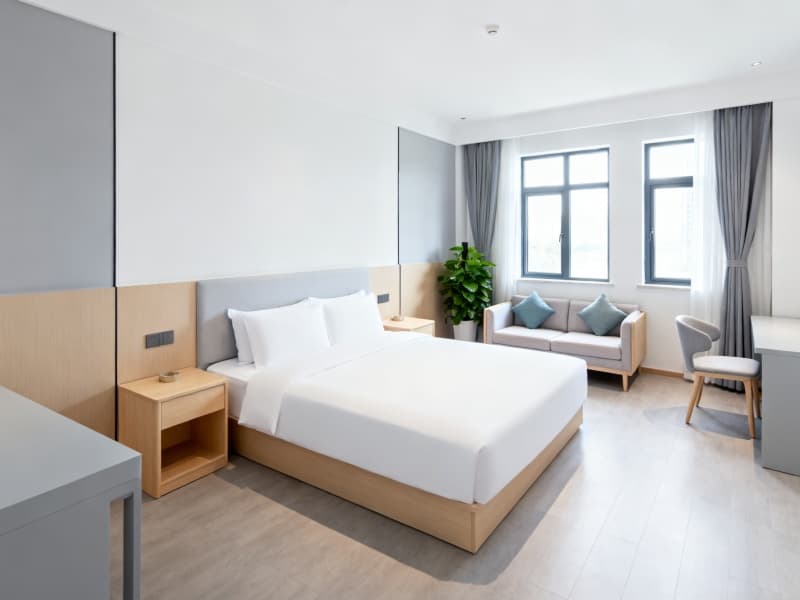 整體設(shè)計(jì)既符合現(xiàn)代酒店的簡約審美趨勢,又充分適配客人的居住需求,讓2000平的酒店空間不僅具備完善的功能,更能成為客人短暫停留期間的舒適休憩場所,傳遞輕松、自在的居住氛圍。