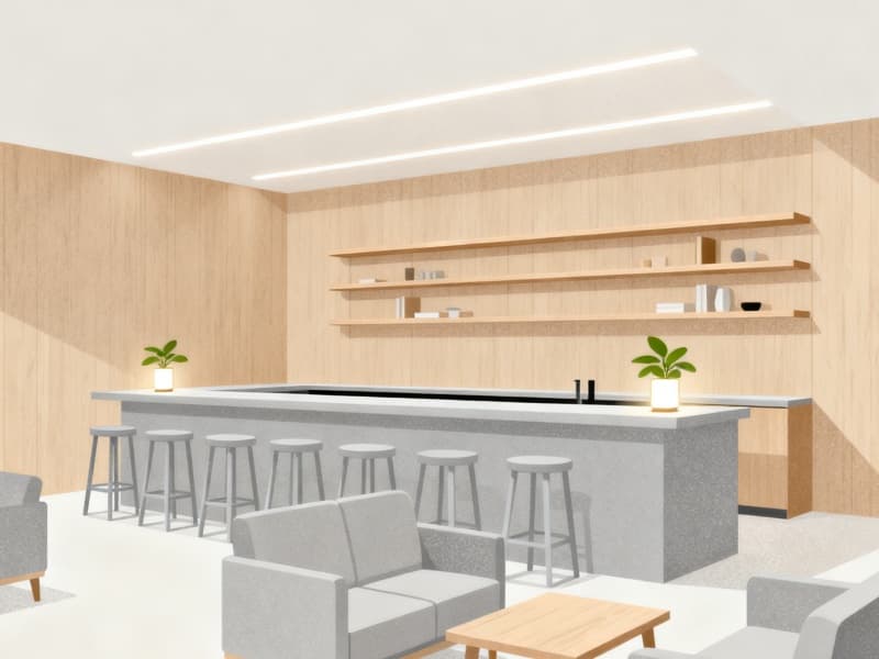 設(shè)計(jì)中注重細(xì)節(jié)的把控,從地面材質(zhì)的選擇(如走廊的靜音地毯),到照明的搭配(如茶吧的間接照明),再到綠植的點(diǎn)綴,每一處細(xì)節(jié)都圍繞“簡約舒適”展開。既保證空間的整潔有序,又通過柔軟的材質(zhì)、柔和的光線與自然綠植,為簡約空間注入溫度,避免過度簡約帶來的生硬感。?