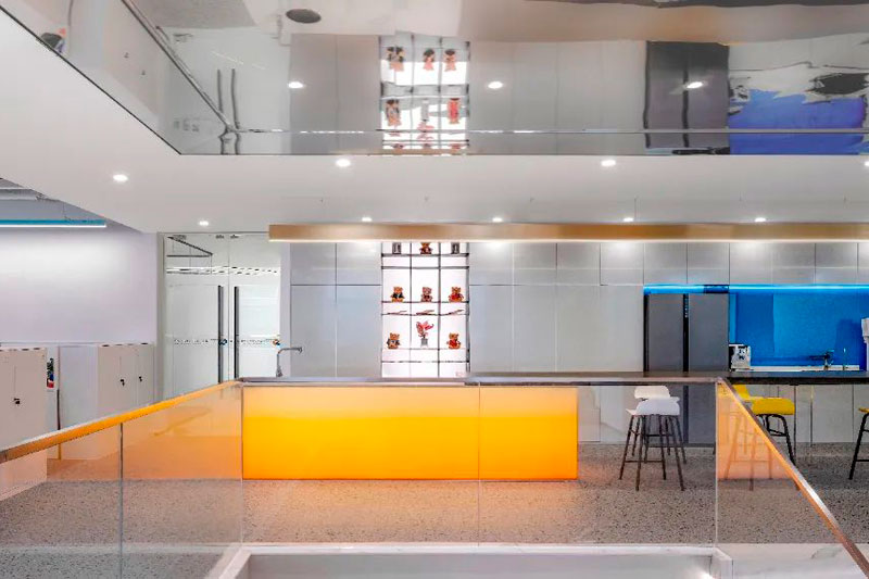 沉浸式體驗(yàn)人與空間交互,茶水區(qū)通過鏡面天花反射,光影在立體空間中流動,超動感空間氛圍就此而生,板塊的不斷更新為它帶來永不停歇的活力,這里是“巨人”的世界。