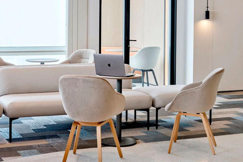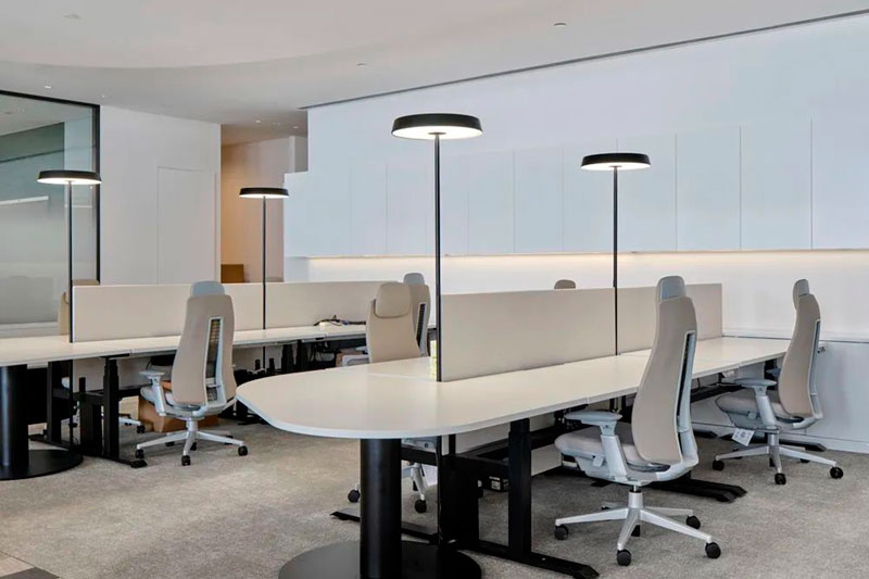 后場(chǎng)辦公區(qū)延續(xù)了前廳的辦公理念,結(jié)合不同功能形式的會(huì)議室、電話間,提供了多選擇的工作模式,簡(jiǎn)潔而高效。大量可再生面料的墻飾、可回收吸音板和仿生苔蘚的應(yīng)用,豐滿了視覺層次并極大提升了空間的聲學(xué)效果。