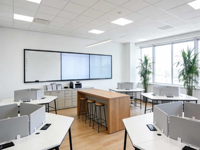 整體空間遵循現(xiàn)代簡約的設(shè)計(jì)理念,注重功能性與美觀性的平衡。色彩上以白色、灰色為主色調(diào),搭配少量木色和綠色作為點(diǎn)綴,既展現(xiàn)出工業(yè)空間的整潔與冷靜,又增添了自然溫暖的氛圍。材料選用上,追求質(zhì)感與耐用性,如金屬、玻璃、石材和木材等,通過巧妙組合,凸顯現(xiàn)代工業(yè)氣息。