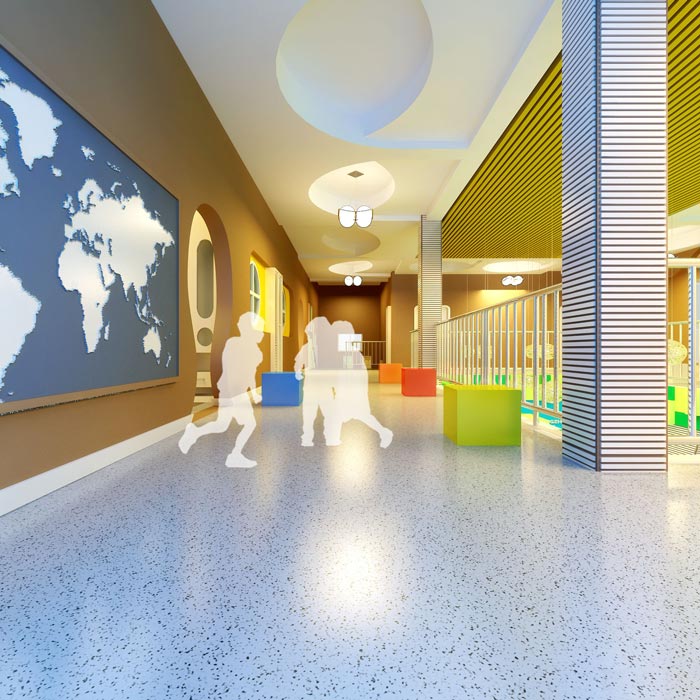 室內(nèi)設(shè)計師與室外設(shè)計師的終極目的就是希望空間可以融為一體,為孩子提供最最自然的成長環(huán)境,回歸到最原始的人類伊甸園中,在這個亦真亦幻地充滿大自然氣息的空間里,孩子們將發(fā)現(xiàn)更多的美。該案例設(shè)計師的想法就是空間處處可玩耍,在設(shè)計師看來孩子的想法是千奇百怪,同時也是純真無比的,設(shè)計師希望盡可能的滿足屬于他們的天性,讓孩子在玩耍的過程中可以不斷地成長,在安全方面防滑地面也保證孩子在玩耍時的安全問題。