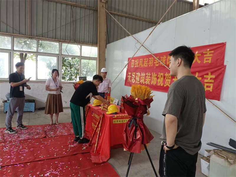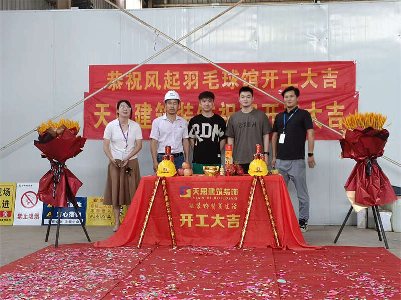 2022年7月18日,陽光高照,在這個晴朗的日子里,風(fēng)起羽毛球館裝修工程正式開工啦,讓我們在這里一起道一聲:“開工大吉!”。感謝業(yè)主對我們天思裝飾的信任,我們必不會辜負(fù)客戶的信任!