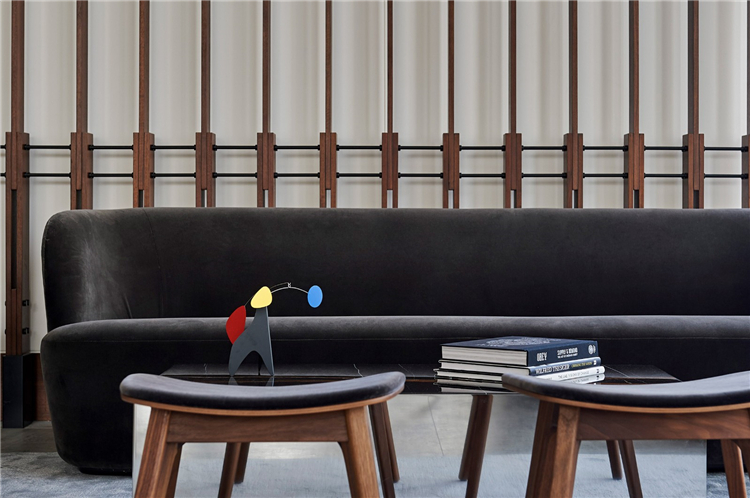 餐廳位于大堂旁邊,由木條幕墻隔開,而不是墻壁,目的是鼓勵人們在兩個空間之間自由移動。“當(dāng)你走進(jìn)大堂時,你會注意到餐廳空間和大堂區(qū)域之間的無縫,我們希望人們?nèi)於寄苡行У乩眠@個空間,這樣你就不會覺得自己被封閉在一個特定的區(qū)域里。”