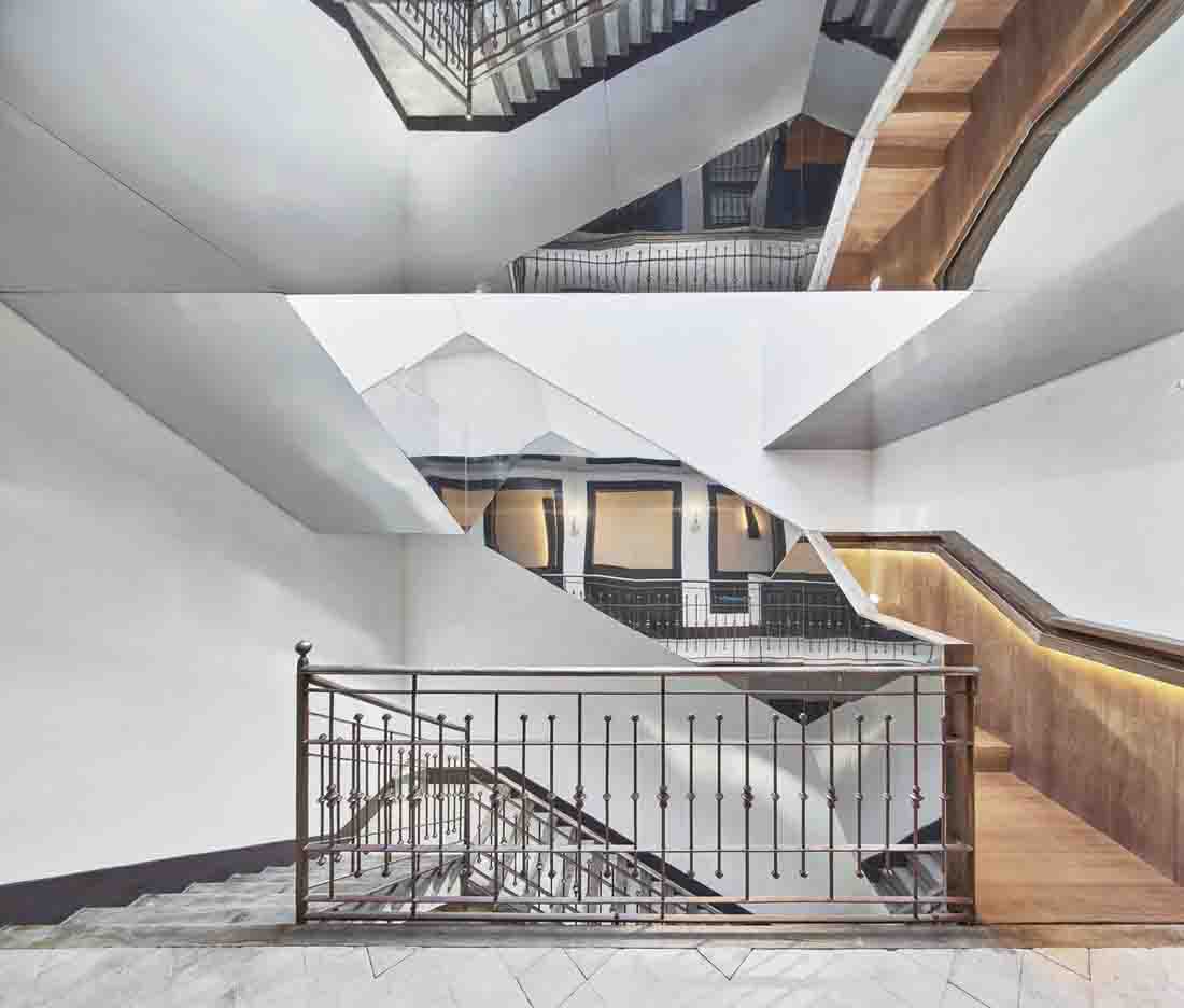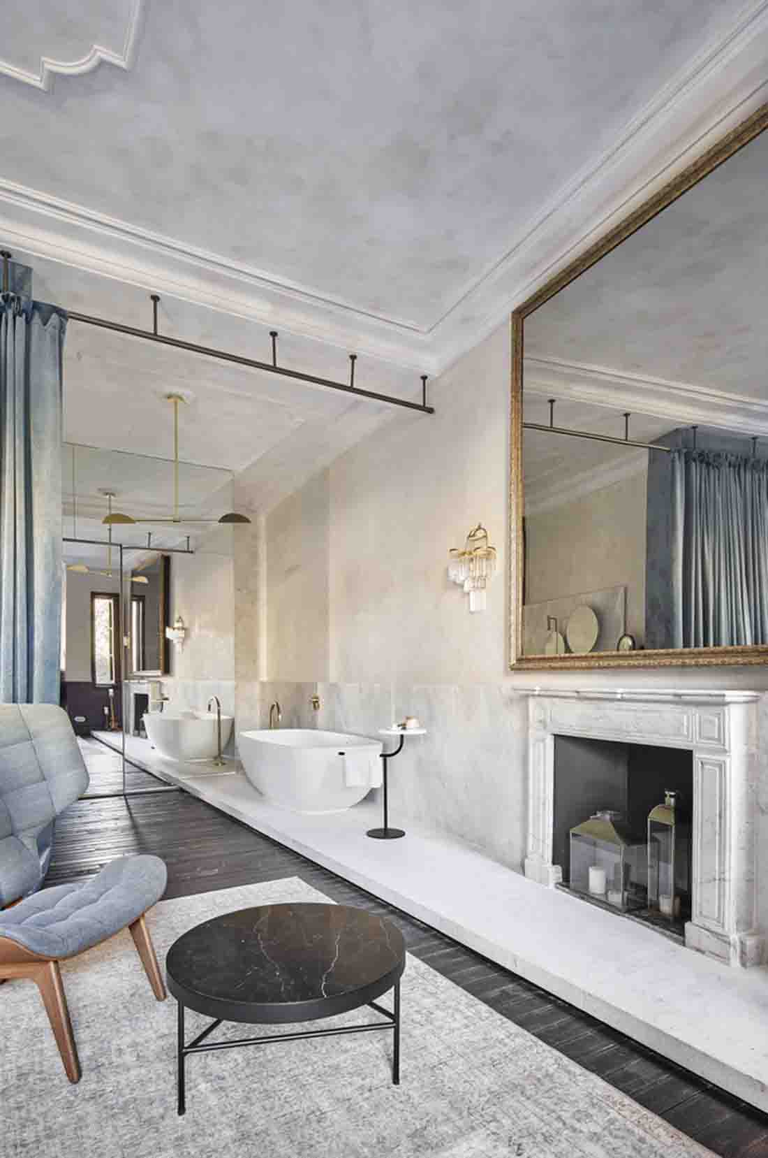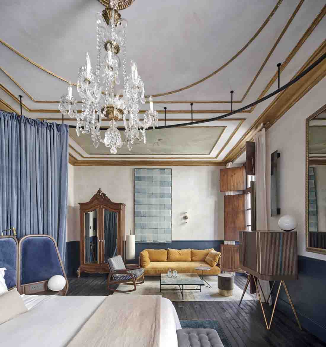 設(shè)計(jì)師旨在喚起比酒店更多的參觀房屋的經(jīng)歷。因此,客戶不是在酒店接待處而是在房子的門(mén)廳見(jiàn)面;找到的餐廳而不是餐廳,而是找到了居民用餐室,這些房間和客廳就像您在老房子中找到的那樣。該項(xiàng)目精心保留了建筑物中浪漫的氛圍,并與不同時(shí)期的干預(yù)和元素進(jìn)行了有意識(shí)的對(duì)比。這是對(duì)現(xiàn)有百年建筑雜交的尊重,它保留了過(guò)去的痕跡,并避免了房屋從未擁有過(guò)的輝煌過(guò)去的錯(cuò)誤恢復(fù)。