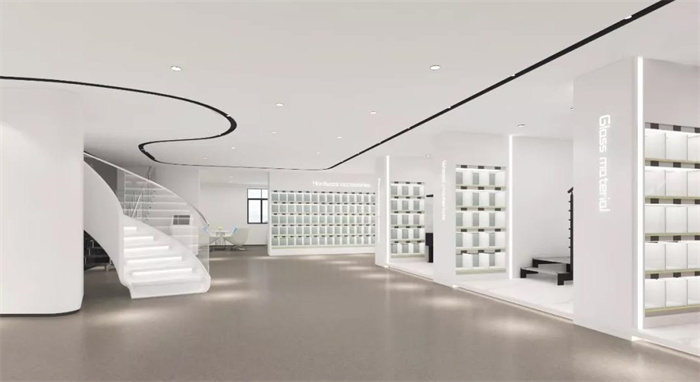 4、辦公室設(shè)計主要以現(xiàn)代科技風(fēng)為主。設(shè)計師根據(jù)客戶空間需求及展廳空間特點,以產(chǎn)品和洽談相結(jié)合的特點,打造辦公和展廳一體化的辦公空間。在滿足功能性的同時兼具藝術(shù)性,就采用時尚大白的為主要色系,灰色為輔。簡潔大方,韻味十足,與品牌定位相融合。打造多個辦公區(qū)、產(chǎn)品展廳、公司文化墻等深深地融合在辦公空間中,形成現(xiàn)代國際化辦公空間氛圍。