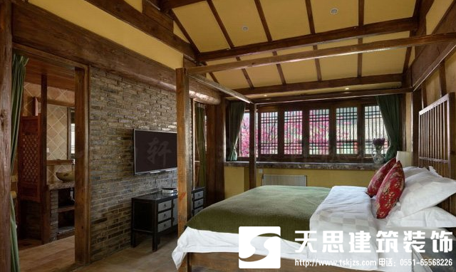 例如上圖中式客棧裝修,天思裝飾設(shè)計(jì)師以簡(jiǎn)約古樸的方法,結(jié)合了現(xiàn)代人的審美觀念,讓具特色的建筑藝術(shù)和木質(zhì)雕飾藝術(shù)結(jié)合在一起,并且把濃郁的民俗民風(fēng)和傳統(tǒng)中式文化完美融合在一起,以滿足人們生活舒適度為主,增添了不少實(shí)用便利功能,讓所有的客棧房間都具備了自己獨(dú)特的風(fēng)格特色,古雅別致,風(fēng)雅宜人,且充滿自由活力。
