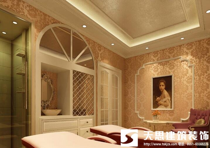 顧客進入護理區(qū),則屬于恬靜,安寧松弛的“陰”區(qū)了,美容床要舒適安寧,光線要柔和,配合舒緩的SAP音樂,以及美容師輕聲舒緩的語調(diào),輕柔的動作,都有助于顧客在體態(tài)放松之中接受美容師,工作護理區(qū)設(shè)計要以柔和的光線,色調(diào)及圓形平撫心情的圖案為主。