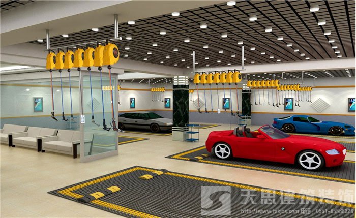 洗車區(qū)是汽修美容店的主要設(shè)施,我相信這個(gè)去過汽車美容店的都知道吧,汽車美容工作的第一步就是在這個(gè)地方完成的。由于汽車產(chǎn)生的污水比較的多,為了保持場(chǎng)所的干凈整潔,應(yīng)該在洗車區(qū)設(shè)置排水通道,將洗車產(chǎn)生的污水排到污水處理器中,當(dāng)然通過裝修解決了排水問題,但是同時(shí)還應(yīng)該經(jīng)常的沖洗和清掃。我們天思裝飾裝修公司總結(jié)了一下汽車美容店裝修的經(jīng)驗(yàn),洗車區(qū)的結(jié)構(gòu)大致一般有單道式和通道式兩種,這里就不詳細(xì)介紹這兩種結(jié)構(gòu)了。在這里我推薦一種結(jié)構(gòu),那就是通道式結(jié)構(gòu),因?yàn)檫@種裝修結(jié)構(gòu)能夠省去倒車的繁瑣,而且還能節(jié)省工作區(qū)域,以此提高工作的效率。