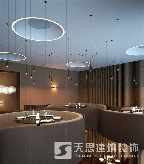 這款會是星星點(diǎn)點(diǎn)的呢?其實(shí)是這樣的,餐廳上方采用的是那種小小的吊燈,照耀出來就成為了無數(shù)的星星點(diǎn)點(diǎn),抬頭仰望,仿佛看到了夜空中的滿天繁星,很是美妙的畫面哦。