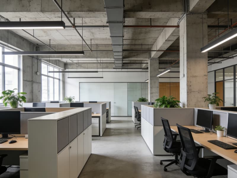辦公區(qū)域設(shè)計簡潔大方,開放式辦公區(qū)采用模塊化的辦公桌組合,員工之間溝通便捷,提高工作效率。獨立辦公室則通過玻璃隔斷與開放式辦公區(qū)相隔,保證了空間的獨立性與通透性。辦公家具選用簡約現(xiàn)代風(fēng)格,搭配綠植,為辦公環(huán)境增添了一份生機與活力。