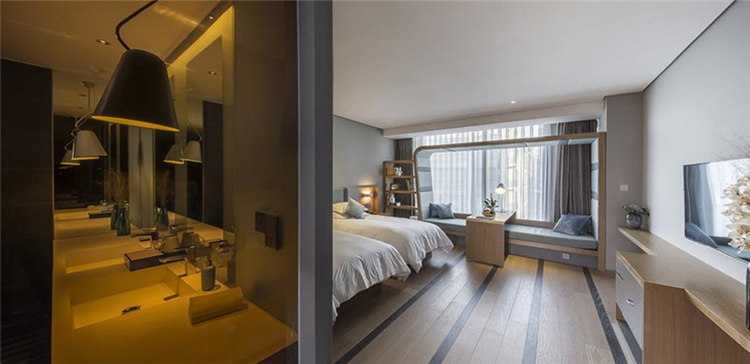 本酒店設(shè)計(jì)注重居室空間的布局與使用功能的完美結(jié)合,以簡潔而不簡單的造型、不繁重?zé)o過多的裝飾來裝點(diǎn)空間,強(qiáng)調(diào)形態(tài)與物件的單一性、抽象性,使整體環(huán)境更顯舒適大氣??臻g簡約的同時(shí),色彩就要跳躍出來,通過大量高純度色彩的運(yùn)用,靈活而又大膽,不單是對現(xiàn)代風(fēng)格的遵循,也是個(gè)性的展示,從而打造出一個(gè)格調(diào)高雅、與眾不同的酒店空間。