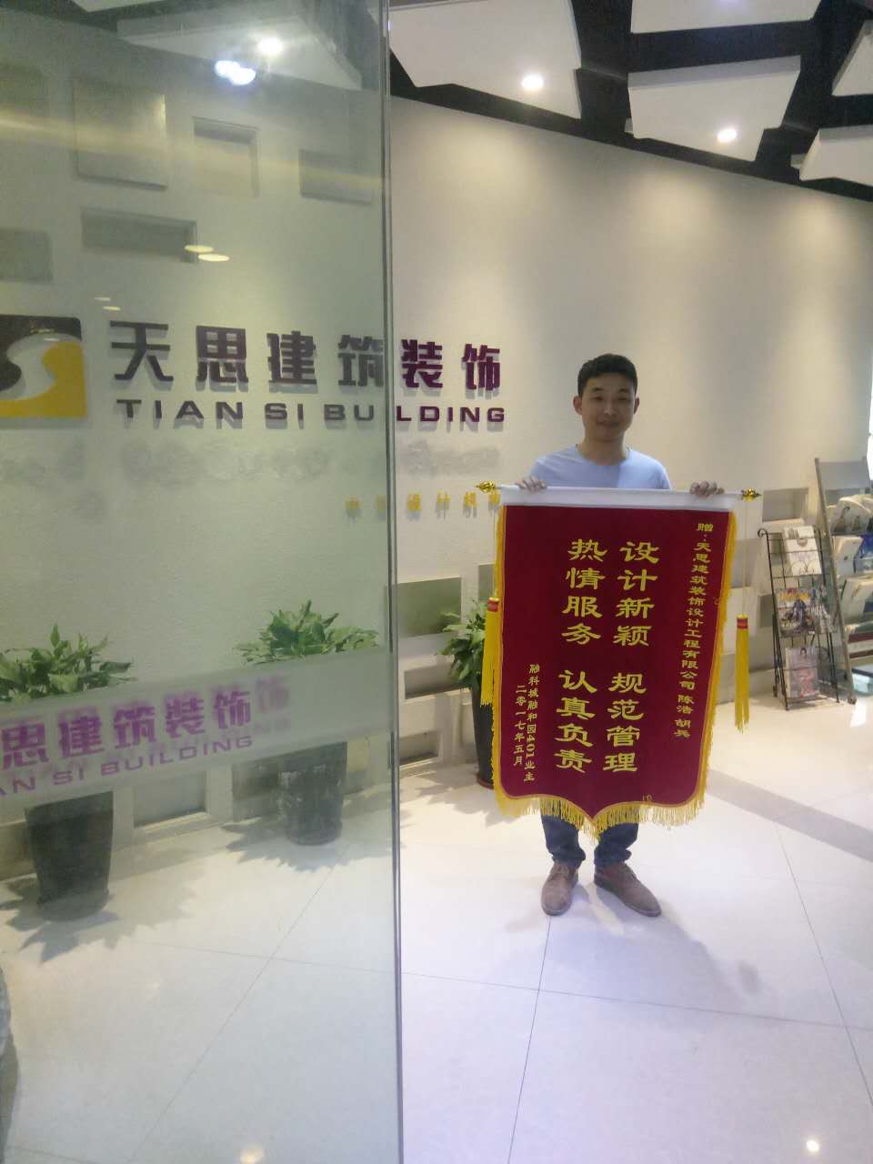 這一次的裝修讓業(yè)主倍感輕松,我們天思的工作人員也非常開心。業(yè)主送的錦旗不僅僅是一種榮譽(yù),更是業(yè)主朋友對(duì)天思工作態(tài)度的肯定和認(rèn)可,是讓我們天思向更高的目標(biāo)邁進(jìn)的強(qiáng)大動(dòng)力。期待以后的我們能用更專業(yè)的質(zhì)素和更好服務(wù)態(tài)度為更多的業(yè)主實(shí)現(xiàn)自己的家具夢(mèng)想,真真正正的為業(yè)主省時(shí)、省心、省力、省錢!