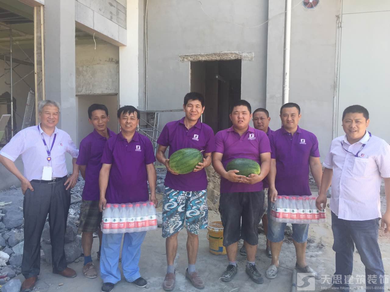 天思建筑裝飾公司為工作在第一線的天思項目經(jīng)理及工人送一點點小小的慰問品,謝謝你們的付出,你們辛苦了。天思一行對大家為趕工期、保質(zhì)量所付出的辛苦表示衷心感謝,并囑咐工地負責(zé)人要愛護裝修工人的身體,在保質(zhì)量為首要前提下抓好安全施工。施工盡量利用早、晚時間,盡量避開高溫時段;若發(fā)現(xiàn)有身體不適,要及時注意休息,情況嚴(yán)重的要及時送醫(yī)。