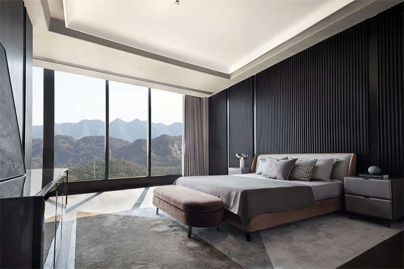 流暢的樓梯設(shè)計(jì)手法貫穿縱向空間,一氣呵成。黑白雙層欄桿扶手、無縫樹脂地坪和極具設(shè)計(jì)感的線性燈帶,把這種極致簡約的設(shè)計(jì)風(fēng)格伸延到整個(gè)空間。