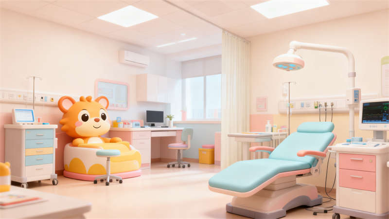 室內(nèi)空間裝修從兒童視角出發(fā),在各功能區(qū)域融入趣味元素。門診大廳以明快的色彩為主調(diào),墻面繪制生動(dòng)的卡通場(chǎng)景壁畫,搭配造型可愛(ài)的座椅與導(dǎo)診臺(tái),讓孩子們進(jìn)入空間時(shí)能感受到輕松愉悅。診室內(nèi)部裝修注重實(shí)用性與舒適度,采用環(huán)保且易清潔的材料,燈光選擇柔和不刺眼的暖色調(diào),避免強(qiáng)光給孩子帶來(lái)不適。?