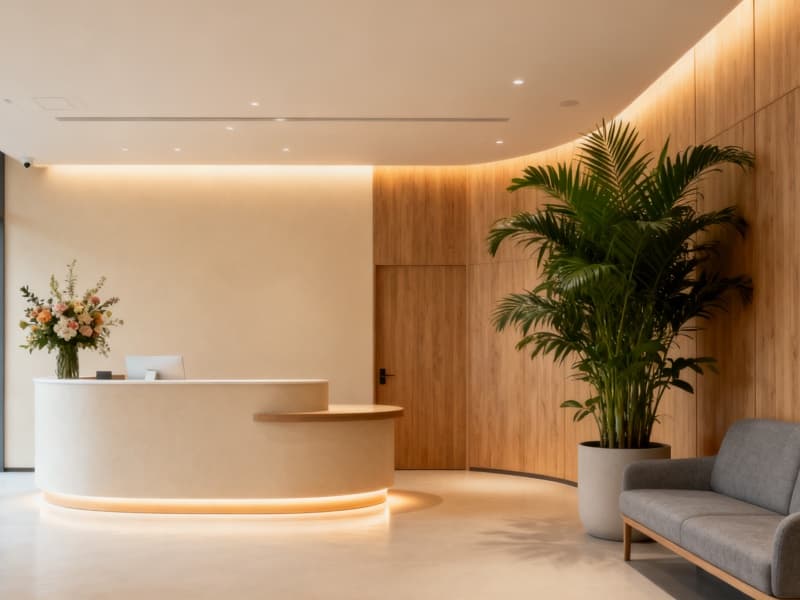 本設(shè)計以康養(yǎng)療愈為核心,聚焦休養(yǎng)人群的身心需求,打造兼具醫(yī)療專業(yè)性與生活溫度的4000平空間。整體風格摒棄冰冷的工業(yè)感,以淺米、原木、柔粉等溫潤色調(diào)為基礎(chǔ),搭配柔和的光線與自然綠植,構(gòu)建舒適安心的環(huán)境氛圍。