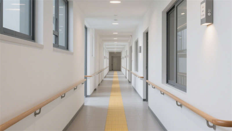 本設(shè)計聚焦養(yǎng)老院室內(nèi)空間的適老化需求與現(xiàn)代審美融合,從居住者的實際生活場景出發(fā),打造兼具安全性與舒適度的環(huán)境。在公共活動區(qū)域,采用無高差地面設(shè)計,搭配防滑耐磨的地面材質(zhì),避免老人行走時發(fā)生磕碰或滑倒;墻面安裝便于抓握的扶手,扶手高度與間距經(jīng)過精心考量,貼合老人起身、行走時的支撐需求,同時扶手外觀融入現(xiàn)代簡約線條,不顯突兀。?