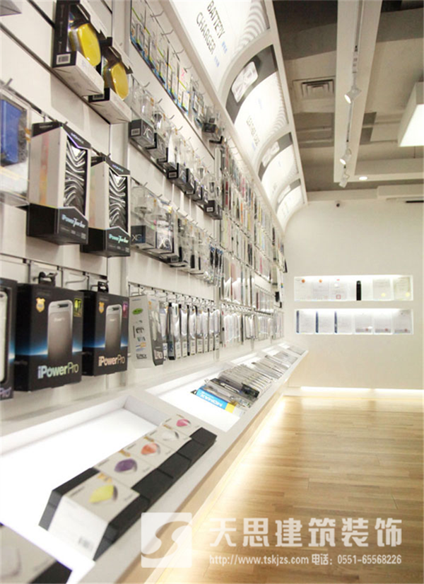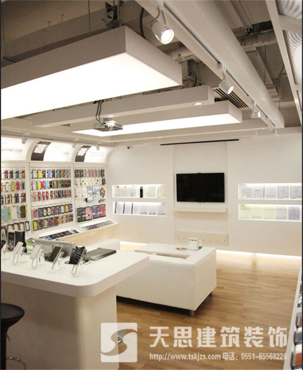 該展廳的照明設計中整體與重點相結,突出展品。照明部分采用暗藏的燈光設計,結合軟膜燈箱在呈現柔和光線的同時,更突出了展示商品。光影的變化,造型的虛實對比為靜止的空間增添拉活躍的元素。整體線條簡單利落。簡潔明快的現代設計元素人性化的功能細節(jié),營造一個突出細節(jié)、時尚簡約的展示氛圍。