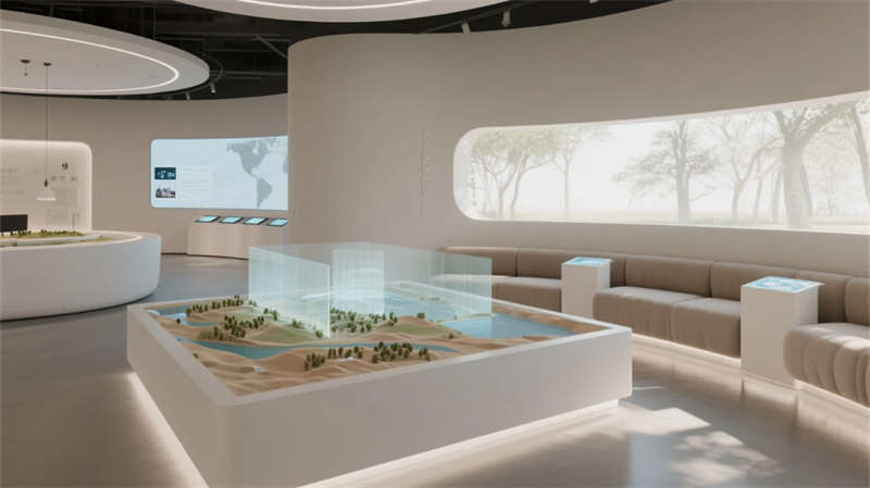 這座展廳以現代簡約風格為核心,打造流暢而富有張力的空間體驗。入口區(qū)以開放姿態(tài)迎接參觀者,核心展示區(qū)陳列創(chuàng)新展品,互動區(qū)通過科技裝置激發(fā)探索樂趣。多媒體區(qū)以視聽盛宴強化敘事,休息區(qū)則提供舒適角落促進交流,會議區(qū)靈活多變適應多樣需求。主題區(qū)巧妙融入本土特色,未來區(qū)以先鋒設計點燃靈感火花。整體設計中,簡潔線條與中性色調營造寧靜基調,高科技元素如數字屏和智能照明無縫融入,增強功能性與藝術感??臻g動線自然引導,從喧囂到沉思,材質選用環(huán)保而溫暖,綠植點綴平衡科技冷峻。展廳不僅服務于展示,更成為啟發(fā)對話與思考的場所,每一功能區(qū)銜接緊密,共同編織一場關于未來的故事。在合肥這座活力之城,設計以包容姿態(tài)回應城市脈動,為公眾帶來沉浸式文化之旅。